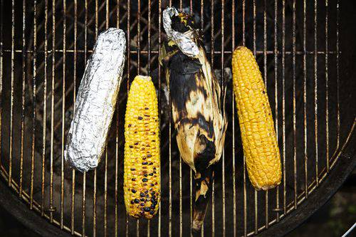 In this way, you need to peel back the skin of his corn in advance. Wrap with aluminum foil and broil a while back-flip several times until done. Cooking time approximately 15 minutes. In this way, the excess is not dirty while peeling because of the former Black charcoal. Cooking step is pretty easy and aluminum foil makes a hot corn is more durable. Suitable for large events. But the drawback, it took the time to peel the corn.